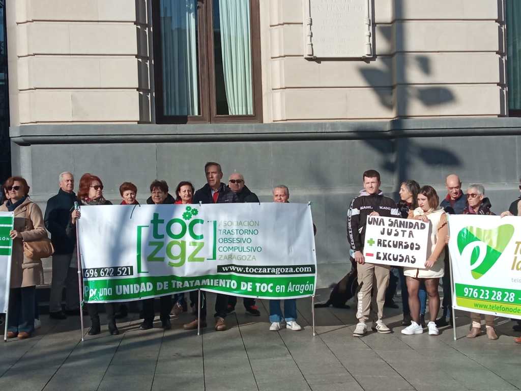 Así, el pasado 18 de diciembre y bajo el lema “Si las Instituciones cumpliesen, no estaríamos aquí”, doce asociaciones que trabajamos por la Salud Mental nos volvimos a concentrar para denunciar la escasez de medios que ofrece nuestra Comunidad y la gran necesidad de ellos que existe en todos y cada uno de los trastornos que representamos. La concentración tuvo lugar de 12 a 13 h en la Plaza de España, en esta ocasión en el lugar más visible de ella, que es delante del edificio de la Diputación Provincial. Además, la meteorología nos favoreció pues hizo un día espléndido. Allí estuvimos repartiendo información de las diversas asociaciones, charlando con personas que se interesaban por el tema y compartiendo unos momentos de diálogo entre nosotros. Exhibimos nuestras pancartas respectivas y la que nos une a todos que tiene como divisa “Aragón por la Salud Mental”, pues es un clamor popular la gran demanda de soluciones para el colectivo de personas con algún tipo de trastorno mental que, según los estudios, está aumentando visiblemente. Como no podía faltar, se leyó el manifiesto que habíamos elaborado y difundido en las redes y medios de comunicación. En él expusimos nuestras justas reivindicaciones.