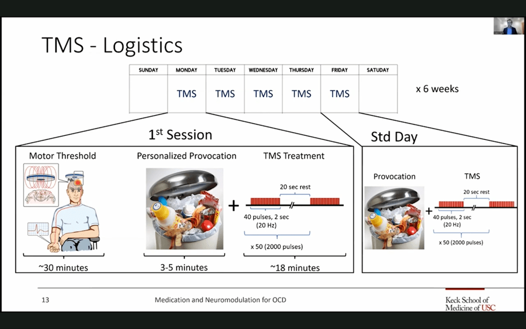 El uso de la estimulación magnética transcraneal para el tratamiento adyuvante del TOC puede ser eficaz siempre y cuando el profesional que lo aplique esté capacitado en terapia cognitiva-conductual con exposición y prevención de respuesta y siga el protocolo indicado con un dispositivo de EMT profunda (deep TMS) aprobado por la FDA y con marcado CE (MDR).