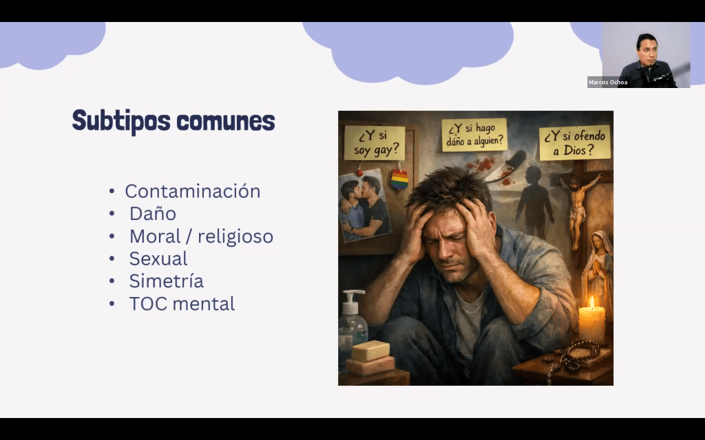 El psicólogo Marcos Ochoa, máster en Psicología Clínica, es psicoterapeuta especializado en TOC, uno de los directores de la Fundación ALTOC (Asociación Latino Americana de TOC) y miembro de la IOCDF. Actualmente colabora en la investigación del Proyecto Latino que estudia la genómica del TOC en Latinoamérica. Lleva tratando a personas afectadas de este trastorno desde hace varios años.